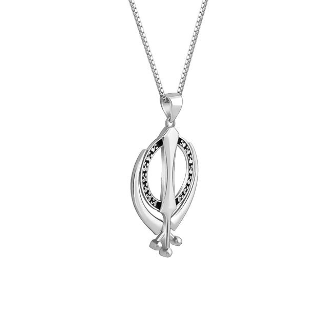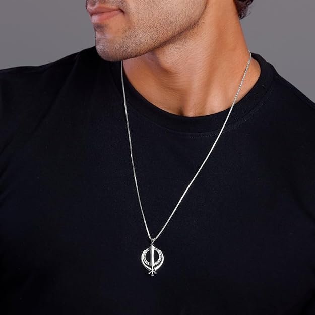 GIVA Silver Khanda Pendant Box Chain For Him