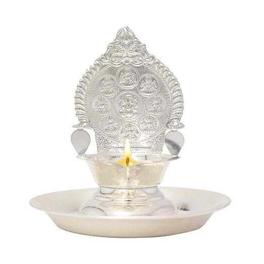 Expertly made from high-quality sterling silver, the diya features intricate detailing that reflects fine craftsmanship and timeless tradition. The accompanying silver thali adds both functionality and grace, providing a complete setup for daily worship, special ceremonies, and festive occasions like Diwali, Lakshmi Pooja, and housewarming rituals. A meaningful blend of devotion and elegance, it also makes for a thoughtful and cherished gift.